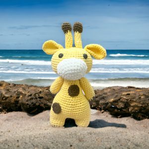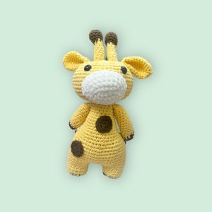 In summary, a crochet handmade Baby Giraffe Amigurumi with a yellow body, brown spots, and a blend of pure cotton and velvet wool is a delightful and cuddly creation that captures the charm of these gentle creatures. Its adorable design and soft textures make it a heartwarming addition to any space or a perfect gift for giraffe lovers and young children.
