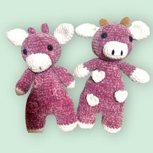 **Materials**: The Valentine Calf Amigurumi is meticulously crafted using soft and luxurious velvet wool, which gives it a plush and velvety texture. This choice of material adds a touch of luxury and warmth to the Amigurumi, perfect for a Valentine’s Day-themed creation.